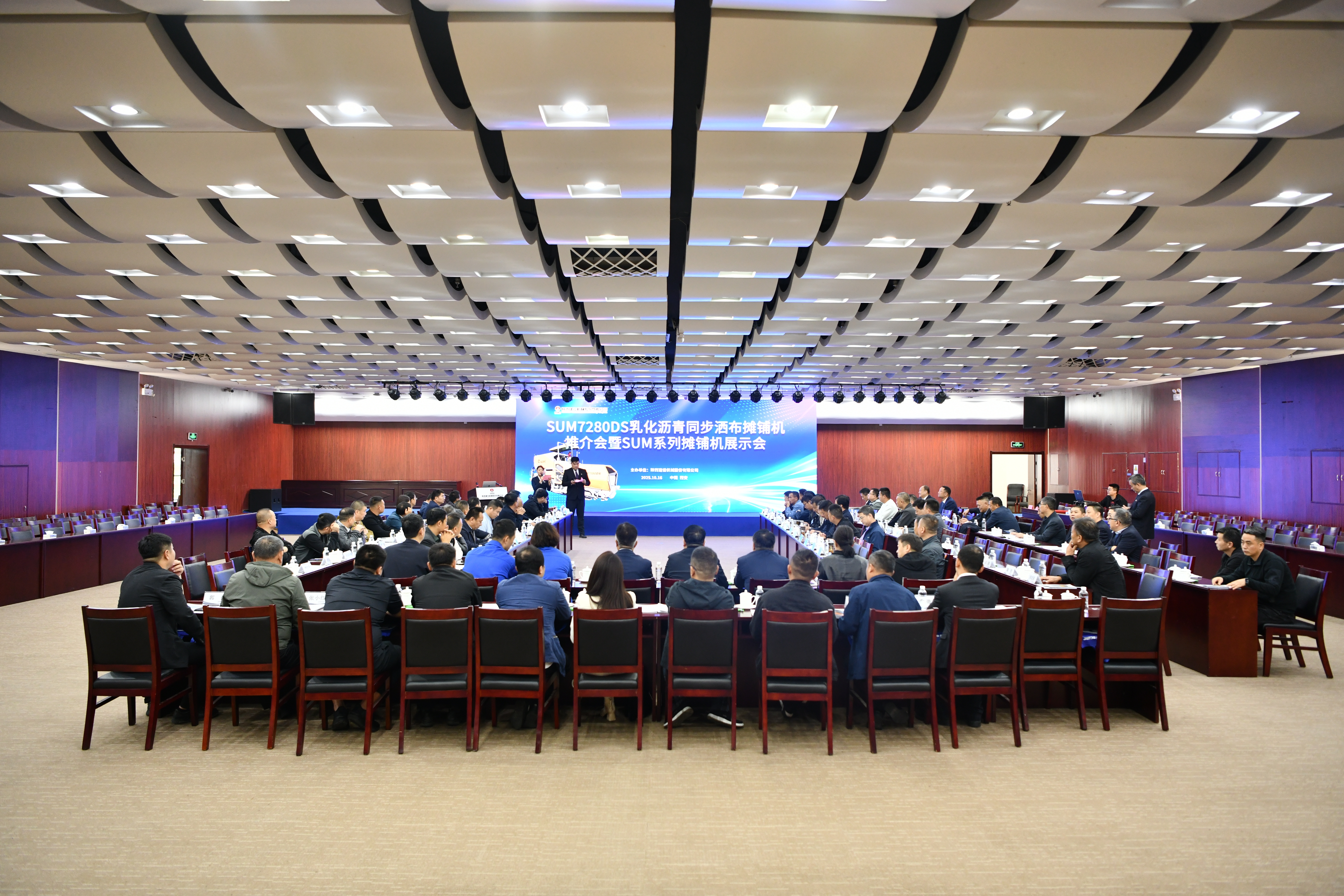 陕建机股份举办SUM7280DS乳化沥青同步洒布摊铺机推介会暨SUM系列摊铺机展示会