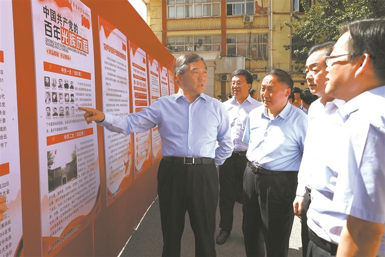 陕煤集团党委书记、董事长杨照乾参观集团庆祝建党100周年主题展览。