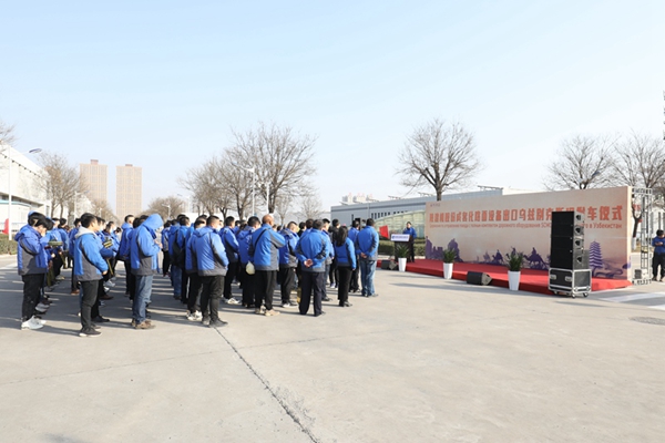 2月8日上午10点,在泾渭工业园区,陕建机股份公司举办2021年首批出口乌兹别克斯坦成套路机产品发车仪式。