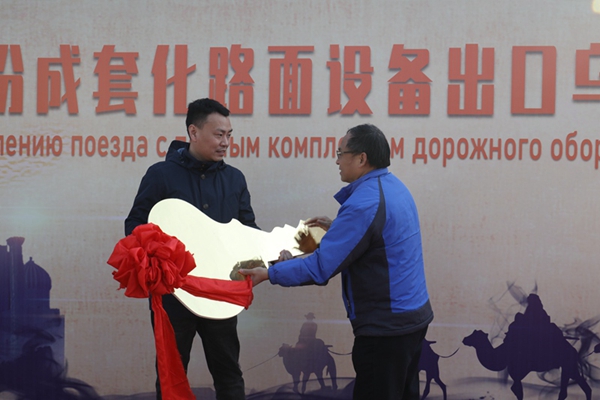 仪式上,陕建机股份公司为用户代表颁发了象征意义的设备“金钥匙”,宣布了“发车令”。搭载崭新成套设备的三辆运输车在与会人员的夹道欢送下,迎着漫天彩花,伴随震天锣鼓,驶向塔什干。