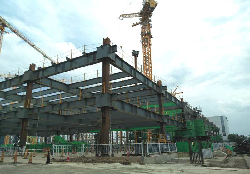 三星(中国)半导体12英寸闪存芯片二期钢结构项目——EDS栋、两侧回风廊、仓库栋。钢筋混凝土钢结构柱+钢梁、仓库栋为钢柱+钢梁等主次结构组成,用钢量约2000吨。
