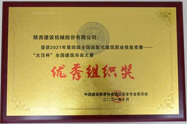 陕建机股份荣获2021年第四届“大汉杯”全国建筑吊装大赛优秀组织奖