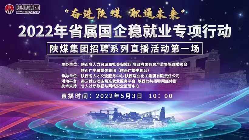 由陕西省人力资源和社会保障厅、陕西省国有资产监督管理委员会、陕西广电融媒体集团(陕西广播电视台)主办,陕西煤业化工集团有限责任公司、陕西省人才交流服务中心承办的“陕煤集团高校毕业生招聘周”活动于4月29日正式启动。