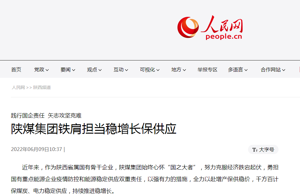 近年来,作为陕西省属国有骨干企业,陕煤集团始终心怀“国之大者”,努力克服经济跌宕起伏,勇担国有重点能源企业疫情防控和能源稳定供应双重责任,以强有力的措施,全力以赴增产保供稳价,千方百计保煤炭、电力稳定供应,持续推进稳增长。