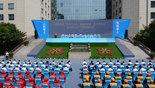 与会领导共同启动陕煤集团“喜迎二十大、奋战四季度、全力保安全”百日安全生产大行动。