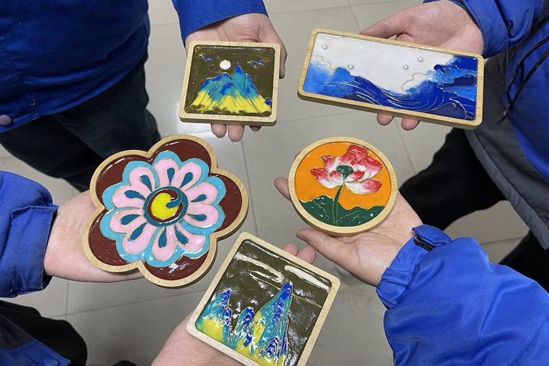 活动中,大家兴趣盎然,亲手完成了描摹、涂胶、掐丝、捋丝、点蓝等一道道工序,积极交流对传统艺术和文化的理解,分享各自的体验感受,纷纷为中国非物质文化遗产点赞,也为这次别具一格的主题党日活动点赞。