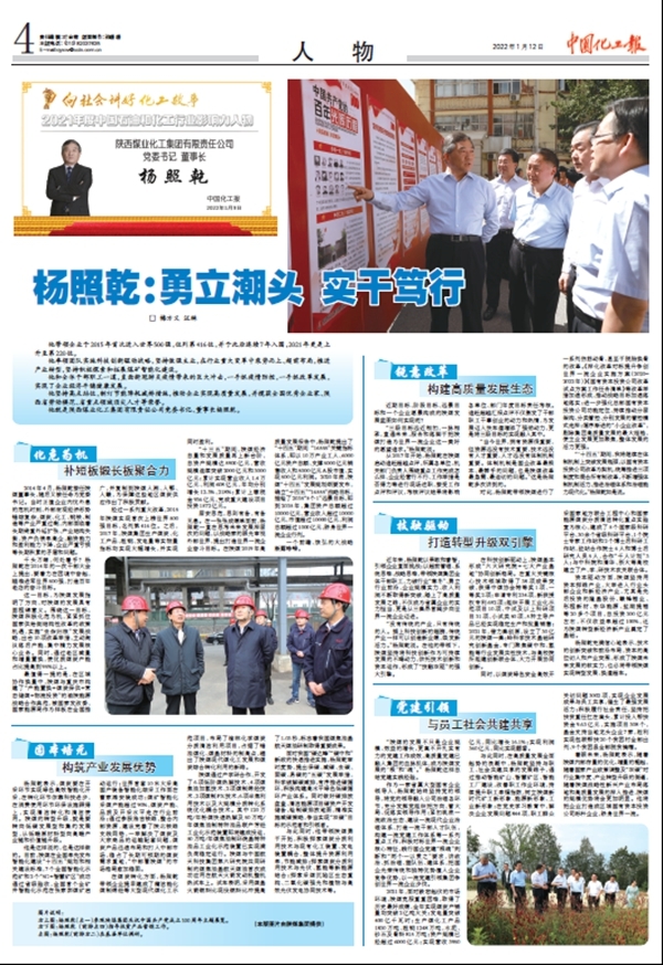 中国化工报 | 杨照乾:勇立潮头 实干笃行