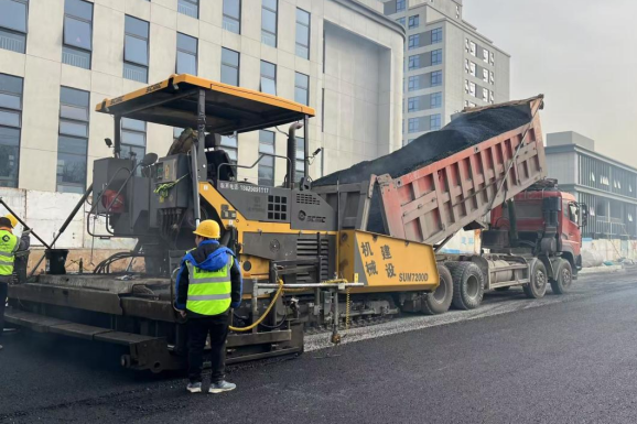 建设机械化高效完成雁引路西侧规划路沥青摊铺工程