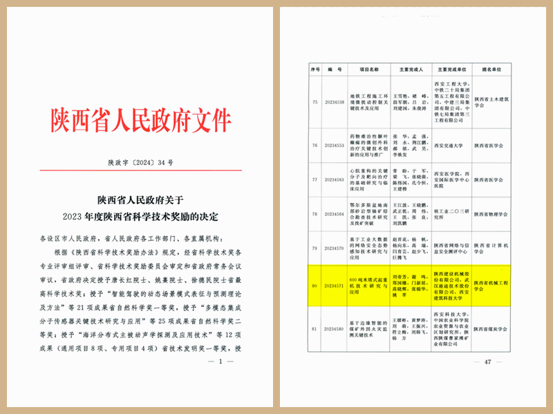 喜讯:陕建机股份荣获陕西省科技进步奖