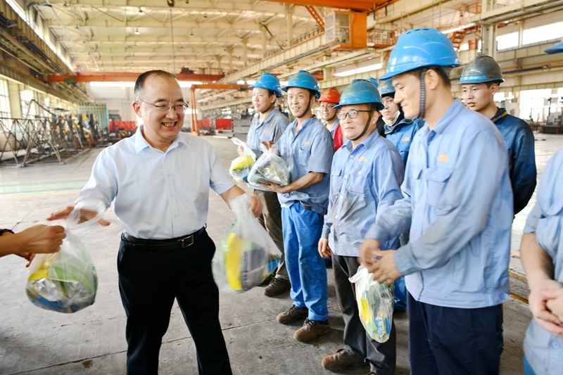 盛夏时节,烈日炎炎。为进一步推动主题教育走深走实,扎实开展“我为群众办实事”实践活动,做好高温天气职工群众安全健康权益,陕建机股份领导班子成员走进基层,开展盛夏“送清凉”活动。8月1日下午,该公司党委书记、董事长杨宏军等领导班子成员到铆焊车间生产现场,把清凉物品送到了一线职工们手中。杨宏军与职工们亲切交流,关心他们身体健康,了解他们生产生活情况,参观了铆焊车间为职工配置的包含冷饮机和冰淇淋机的“清凉角”,品尝了职工制作的冰淇淋,对铆焊车间的做法给予充分肯定,同时叮嘱大家越是在高温天气,越要增强安全意识,...