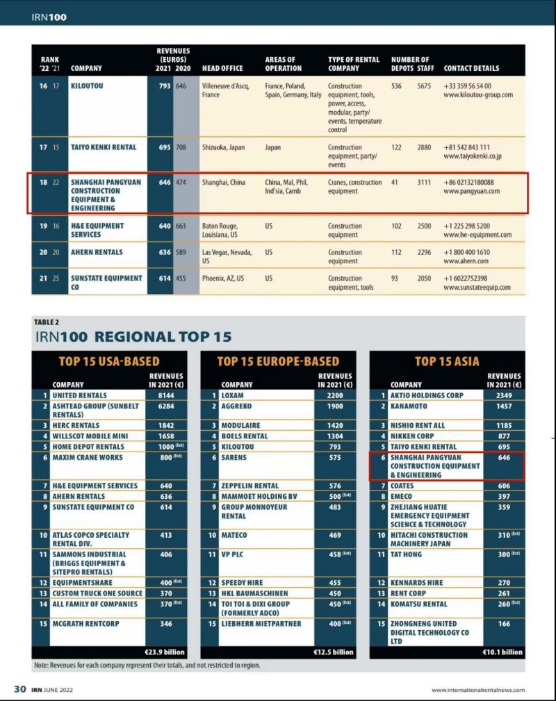 第18位,陕建机股份庞源租赁全球租赁百强榜排名再刷新