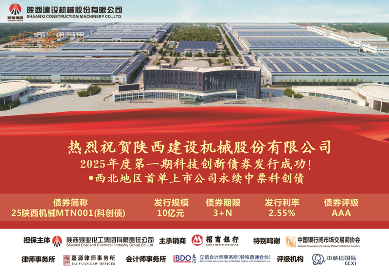 6月26日,九州(中国)(以下简称“建设机械”)成功发行2025年度第一期科技创新债券,发行规模10亿元,票面利率2.55%,发行期限3+N年,债项评级AAA。 本次中期票据简称“25陕西机械MTN001(科创债)”,由陕煤集团提供连带责任保证担保,招商银行担任独家承销商。建设机械充分借助中国银行间市场交易商协会大力推广债券市场“科创板”的有利政策,成功发行西北首单上市公司科技创新债券,也是陕西省属企业首次发行次级永续中期票据。作为陕煤集团装备制造板块核心企业,建设机械自2004年在上海证券交易所挂牌上市(股票代码:...